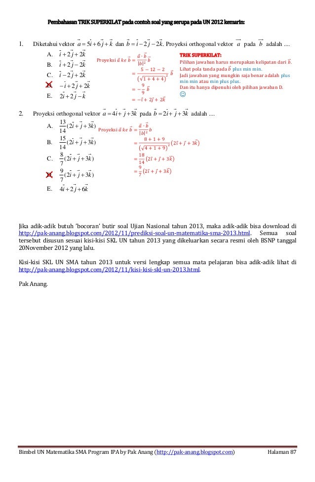 Home pembahasan soal matematika sma proyeksi ortogonal vektor pembahasan contoh soal proyeksi ortogonal suatu vektor pada vektor lain. B nomor 2 diketahui vektor u i 2j 3 k dan v 2i 3j 6 k. Download rangkuman contoh soal vektor dalam bentuk pdf klik disini.