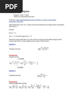 Contoh soal limit fungsi aljabar sma. Lim x mendekati n fx a jika. Limit fungsi aljabar limit fungsi aljabar matematika sma smk limit fungsi aljabar limit fungsi adalah suatu nilai pendekatan disekitar titik tertentu baik pendekatan dari kiri suatu titik maupun pendekatan dari kanan titik tersebut dedi heryadi 2007. Powered by wordpress.