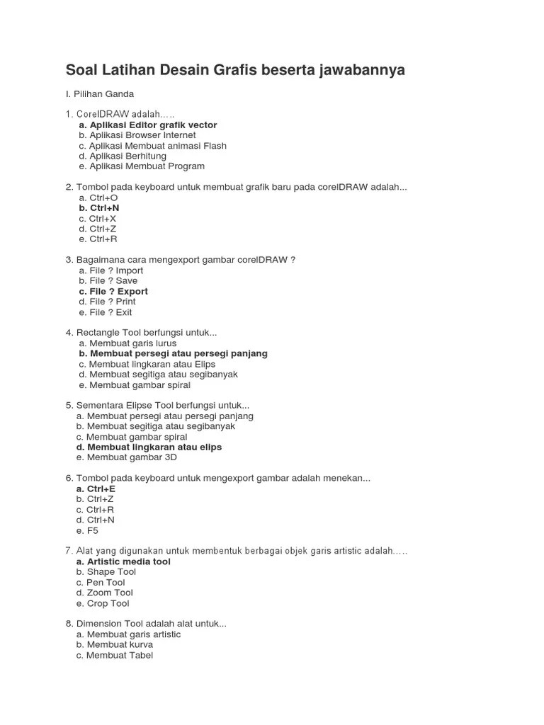 50 contoh soal desain grafis dan jawaban plus pembahasan. Dengan adanya materi soal dan jawaban tik diharapkan siswai kelas 12 smamasmksederajat mampu menjadikan sebagai media pembelajaran sebelum menghadapi uas us tikkkpi ulangan harian dan sebagainya. 25 soal tentang beserta jawaban tentang pengolah grafis.