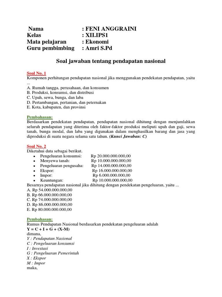 Soal dan jawaban ekonomi tentang pendapatan nasional. Y c i g x m 18000000 14000000 4. Pengertian pendapatan nasional score. Berikut ini saya bagikan contoh soal tentang pendapatan nasional beserta pembahasannya semoga bermanfaat.