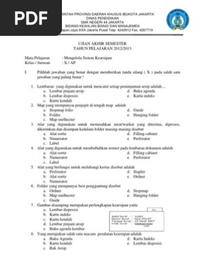 Soal pilihan ganda kelas 10 smk kearsipan 1. Silakan klik link untuk membuka soal.