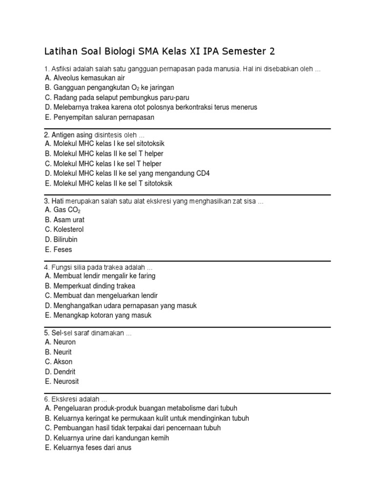 Soal Dan Jawaban Biologi Kelas Xi Semester 2 Sistem Ekskresi