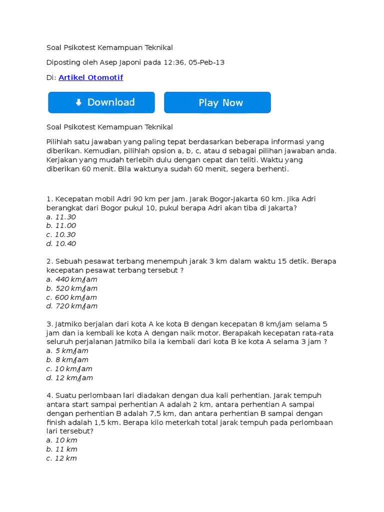 Latihan Psikotes Kemampuan Teknikal A.
