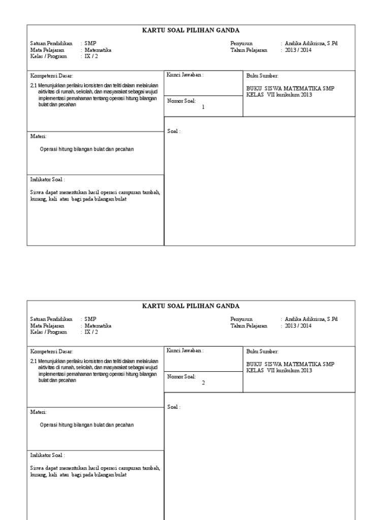 Format Kartu Soal Kelas IX Semester 2 (Andika) (Barry Alvarez)